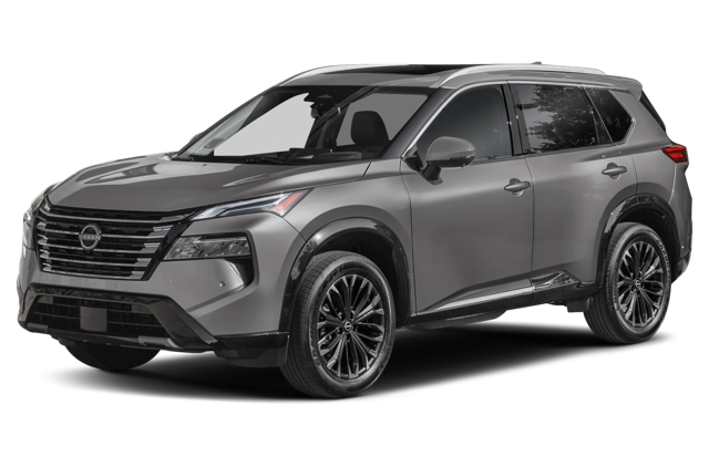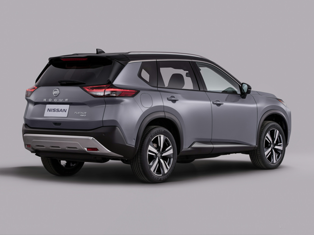 The 2024 Nissan Rogue is available in four trim levels, each with distinct exterior features. The base S trim comes with LED headlights and 17-inch wheels, while the SV adds larger 18-inch wheels and a power liftgate. The SL trim features 19-inch wheels, optional two-tone exterior colors, LED fog lights, and roof rails. The top-of-the-line Platinum trim offers premium exterior styling, with chrome accents on the door handles, window surrounds, and rear bumper, as well as a panoramic moonroof.