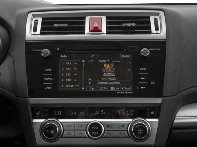 - Radio: Subaru Starlink 7.0" Multimedia Plus System -inc: AM/FM Stereo HD Radio w/single-disc CD player, MP3/WMA/CRR/RW file capability, multi touch gesture high resolution 7.0" LCD display screen, voice activated controls, Bluetooth audio streaming connectivity, Bluetooth hands-free phone connectivity, Bluetooth hands-free text messaging connectivity, iPod control capability, SiriusXM all access radio (subscription required), SiriusXM travel link (subscription required), dual USB port, 3.5mm auxiliary input jack, 6 speakers, rear in glass audio antenna and roof mounted audio/satellite and connected services antenna, Aha StarLink enrollment cannot be applicable to Fleet Management Companies (FMCs) or to Commercial fleet accounts at this time.