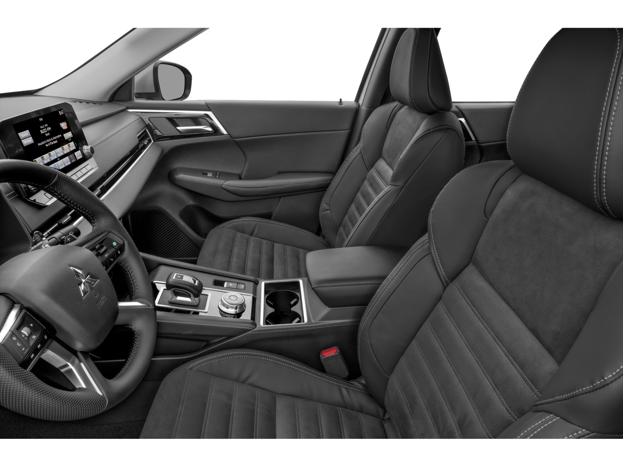 - Radio: AM/FM 9.0" Navigation w/Smartphone Link -inc: 6 speakers, Apple CarPlay, Google Android Auto, SXM all-access and SXM traffic and travel link w/90-day subscription, Mitsubishi Connect, HD Radio, smartphone wireless charger, Bluetooth wireless technology, steering wheel controls for phone, audio and voice recognition and USB ports
