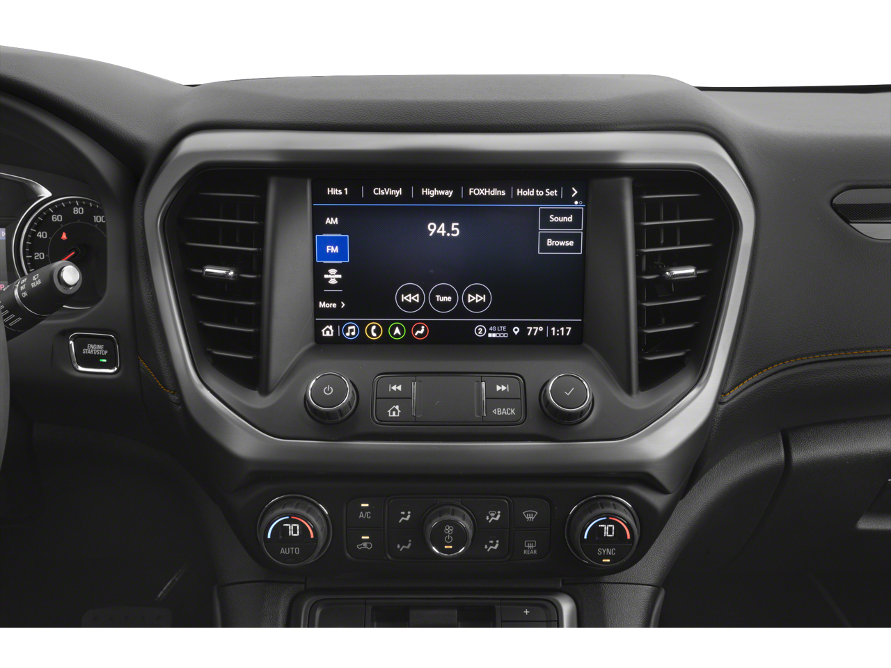 - Audio system, 8" diagonal GMC Infotainment System with Navigation includes multi-touch display, AM/FM/SiriusXM stereo, Bluetooth streaming audio for music and most phones, Android Auto and Apple CarPlay capability for compatible phones, advanced voice recognition, in-vehicle apps, personalized profiles for infotainment and vehicle settings