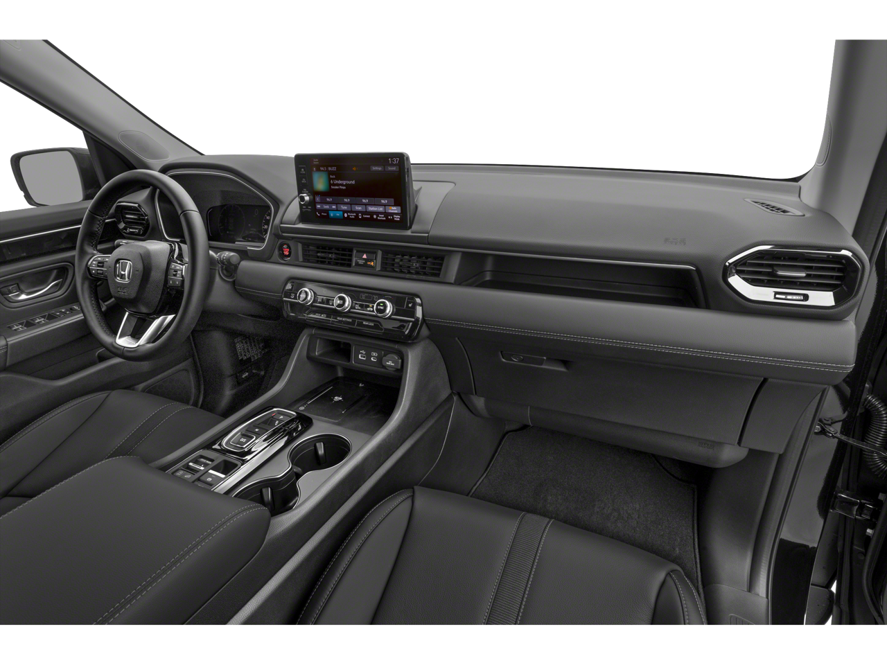 - Radio: 245-Watt Audio System -inc: 9 speakers w/subwoofer, 9" color touchscreen, Bluetooth® HandsFreeLink and streaming audio, Radio Data System (RDS), Speed-Sensitive Volume Compensation (SVC), wireless Apple CarPlay and Android Auto compatibility, SMS text message function (Your wireless carrier's rate plans apply, State or local laws may limit use of texting feature.), HD Radio, 2.5-amp USB type-A smartphone/audio interface port in front console and CabinTalk in-car PA system